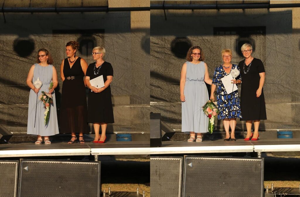 Oklevelet kaptak a kiváló közszolgálati dolgozók, Nagy Violetta, a pusztaszabolcsi József Attila Általános Iskola munkatársa, aki családi okokból nem tudott részt venni a díjátadón, Czövek Julianna, a Dunaújvárosi SZC Szabolcs Vezér Technikum munkatársa, Lepsényiné Szépi Gabriella, a Pusztaszabolcsi Városi Óvoda és Bölcsőde munkatársa, valamint Denkó Mária, a Pusztaszabolcsi Polgármesteri Hivatal munkatársa.