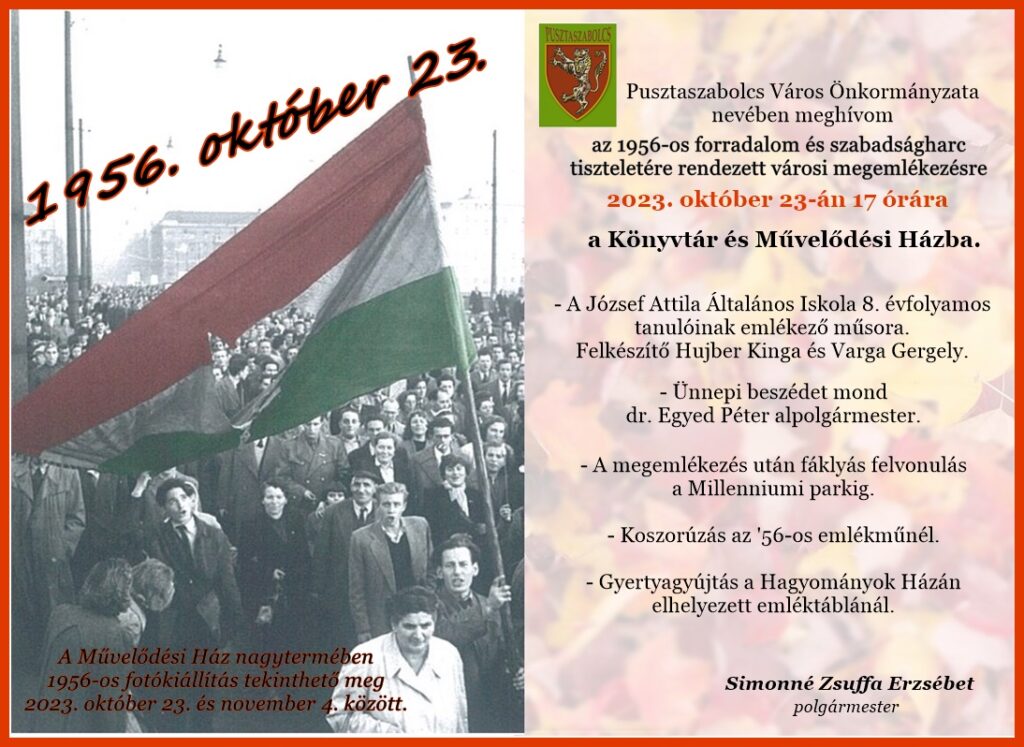 Hírek, közlemények Meghívó az 1956-os forradalom és szabadságharc tiszteletére rendezett városi megemlékezésre 2023.10.16. kommunikacio 93 Views