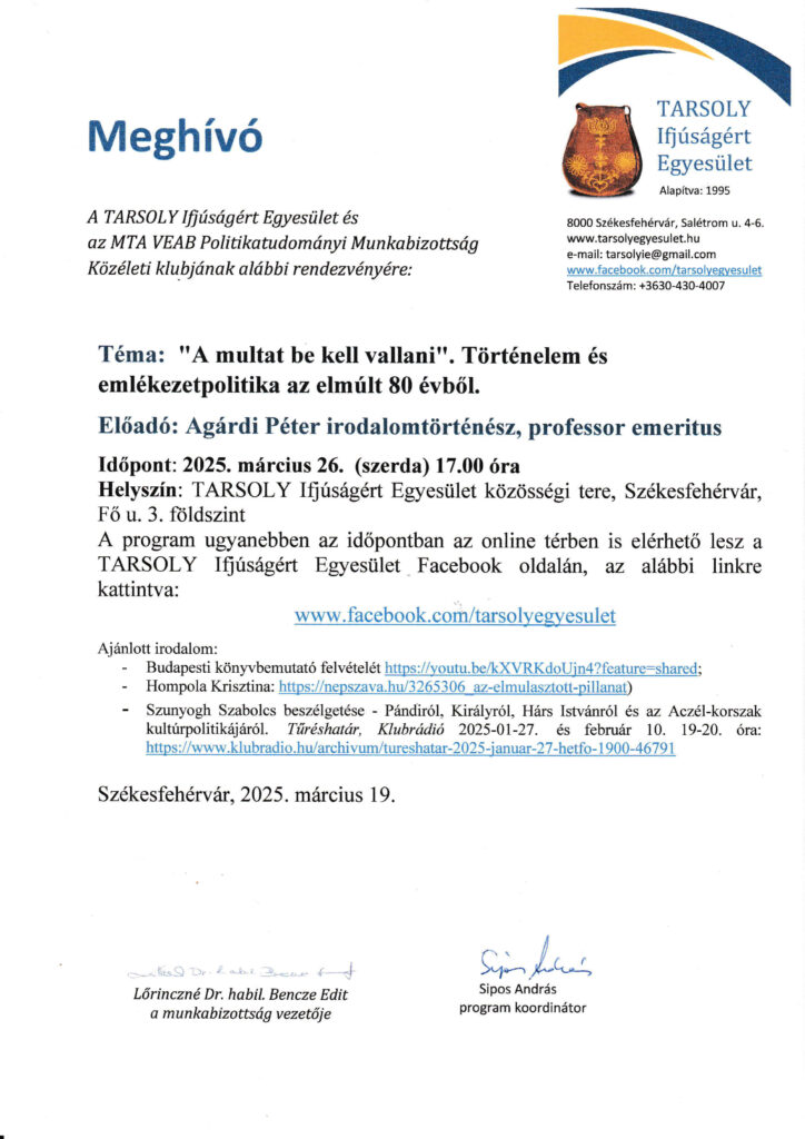 TARSOLY Ifjúságért Egyesület meghívó
