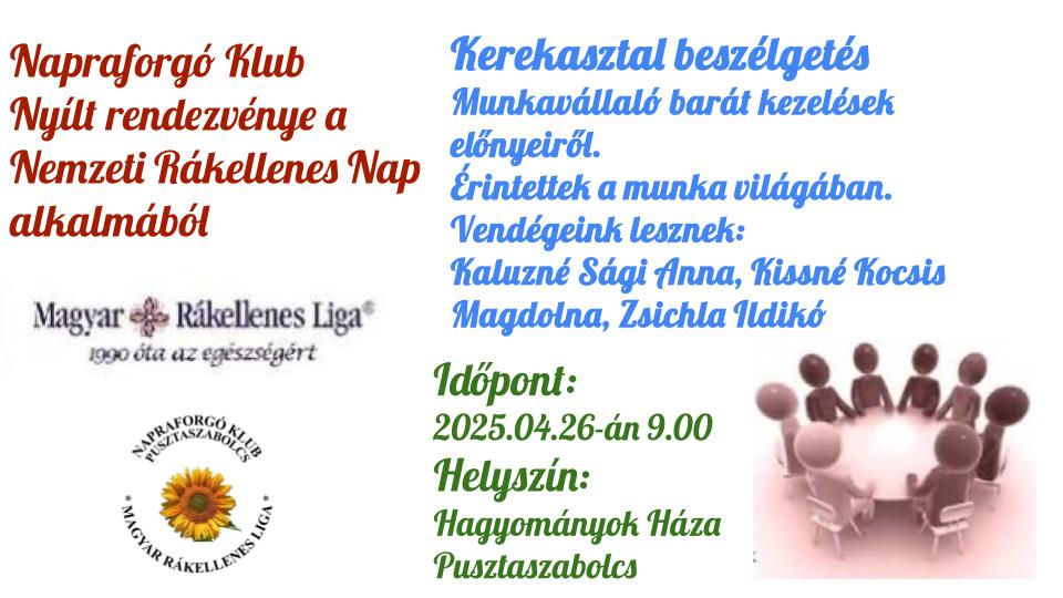 Hírek, közlemények Napraforgó Klub nyílt rendezvénye a Nemzeti Rákellenes Nap alkalmából 2025.04.22. admin 206 Views