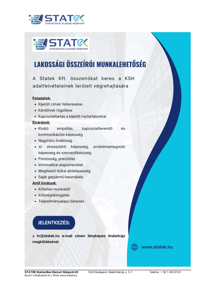Hírek, közlemények Lakossági összeírói munkalehetőség – Statisztikai Elemző Központ 2025.09.03. admin 122 Views