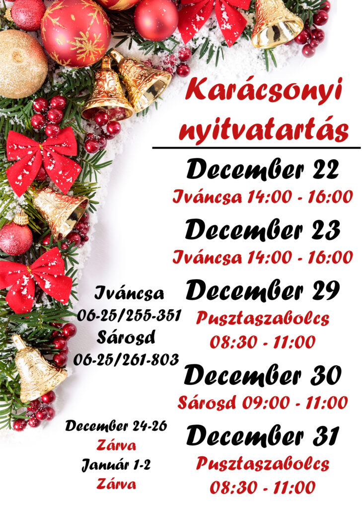 A polgármesteri hivatal ügyfélfogadása az ünnepek körül