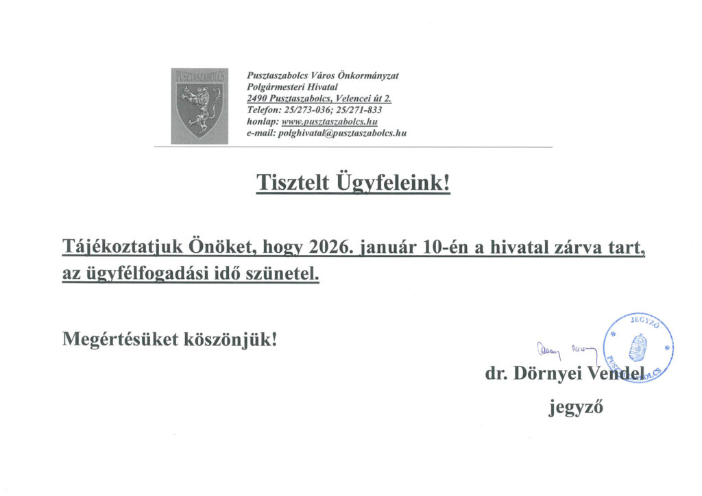 Hírek, közlemények Polgármesteri hivatal ügyfélfogadási idejének változása 2026.01.05. admin 153 Views